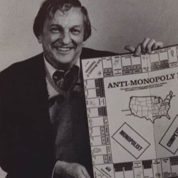 In 1973, economics professor Ralph Anspach was teaching his students about antitrust laws - the rules that are supposed to prevent big companies from becoming too powerful and crushing all their competition.